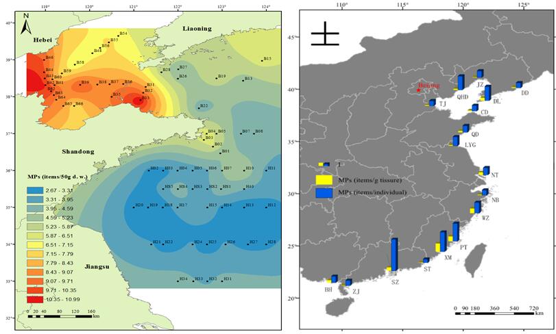 (1) Microplastic pollution in sediments from the Bohai Sea and the Yellow Sea,China. Science of The Total Environment,2018,640-641,637-645. doi: 10.1016/j.scitotenv.2018.05.346.