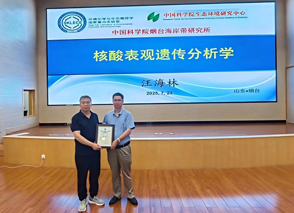 近日,国家杰出青年科学基金获得者、中国科学院生态环境研究中心研究员汪海林应中国科学院烟台海岸带研究所陈令新研究员邀请到所开展学术访问。陈令新研究员主持学术报告会并为汪海林研究员颁发凤凰山陆海大讲堂证书。