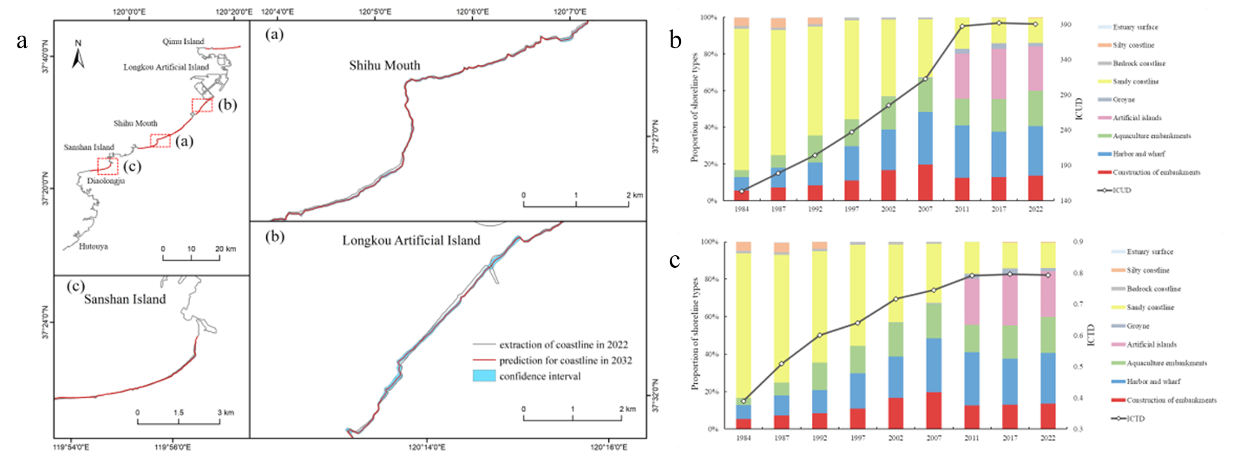 该研究结果可以为莱州湾海岸带科学规划和资源利用提供参考价值。该项工作是中意合作项目“Coastal system changes over the Anthropocene: Natural Vs Induced drivers in China and Italy,中-意海岸带系统人类世变化:自然与人为驱动对比研究”的阶段性成果之一,意大利合作方为意大利研究理事会地球科学与地球资源研究所(Institute of Geosciences and Earth Resources, National Research Council)Sandra Donnici博士, Luigi Tosi博士,受国家自然科学基金(U2106211、No. 41530966)、中国科学院烟台海岸带研究所种子项目(YIC E351030601)支持。相关成果发表于遥感领域二区国际期刊Remote Sensing(Ke Mu et al, 2023)。