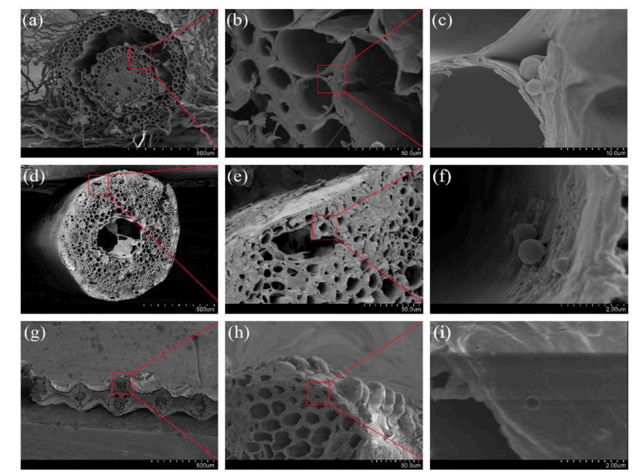 图1 微塑料在燕麦根、茎、叶中分布扫描电镜图像