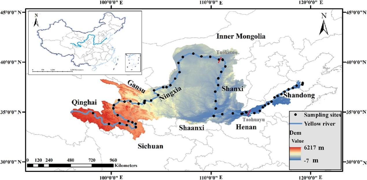 近日,中国科学院烟台海岸带研究所盛彦清课题组于2020年至2023年不同季节对黄河多次全流域的采样分析,从黄河源头到河口黄河流经的7个省份,共采样72个点位(图1),采样点沿河流间隔50公里。在黄河流域悬浮泥沙运移、营养盐迁移转化、河口悬浮颗粒物来源和重金属形态转化等研究中取得了新进展。相关研究成果发表在Agriculture, Ecosystems &Environment等期刊上。