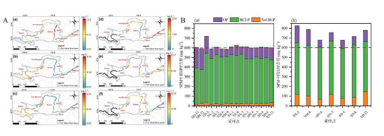 研究表明,黄河流域水体与悬浮颗粒物的磷分布规律在雨季和旱季差异较大(图2)。在旱季,悬浮颗粒物中NaOH-P含量是雨季的2.5 ~ 6.8倍,HCl-P含量与雨季相当,黄河悬浮颗粒物磷的生物利用度存在季节性变化。从黄河源头到河口,磷的反应性逐渐降低,表明黄河生物有效磷向渤海输送的潜力较低。