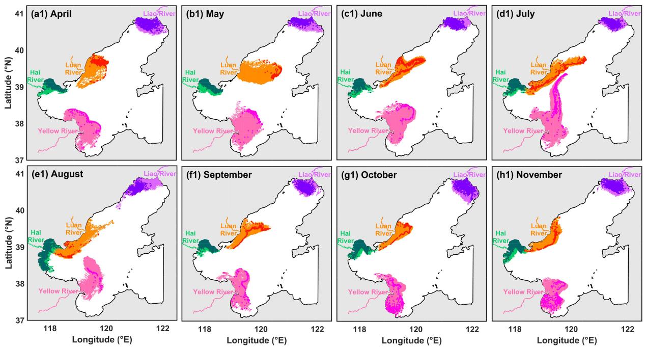 河口海岸区域水动力特征复杂且变化多样,污染物输运动力学对于这些区域的环境评价和管理具有重要意义。鉴于污染物潜在的生物化学影响,结合河口海岸动力学的特点,深入研究污染物的输运过程及驱动机制,能够揭示污染物在复杂环境中的时空分布特征,为区域环境管理和政策制定提供科学依据。多溴联苯醚广泛用于塑料、电子产品和建筑材料,具有持久性、有毒性和生物蓄积性,在环渤海区域主要通过河流入海。中国科学院烟台海岸带研究所康欣奕助理研究员通过渤海三维水动力模型,结合拉格朗日粒子追踪方法对河流入海的溴系阻燃剂在渤海的输运特征及其动力机制进行模拟研究。