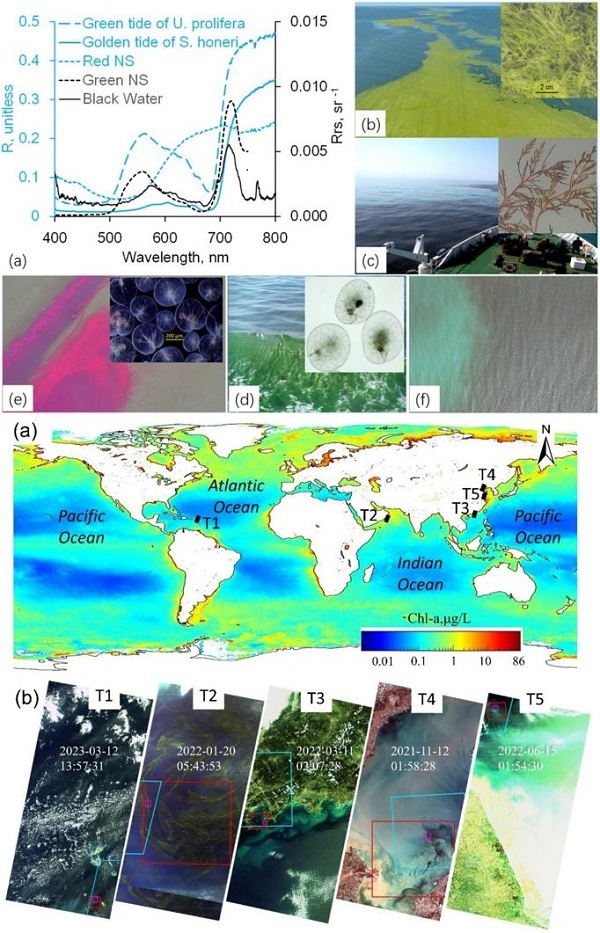 在气候变化与人类活动的双重压力下,全球海岸带海洋藻华呈现分布范围扩大、发生频率增加、持续时间延长、多潮齐发等特点,对海洋生态系统和沿海经济发展构成严峻挑战。近日,中国科学院烟台海岸带研究所海岸带环境灾害遥感与评估研究组(邢前国研究员团队)围绕近岸复杂光学水体多类型藻华的高空间分辨率遥感识别开展了针对性研究,研究方法及其数据结果推动了海岸带藻华遥感技术的发展。