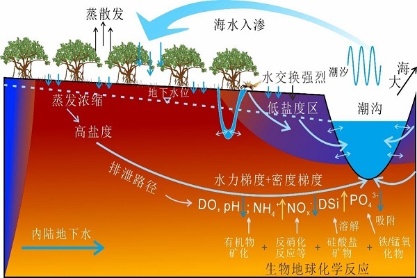 烟台海岸带所揭示红树林潮间带地下水中营养盐迁移转化机制