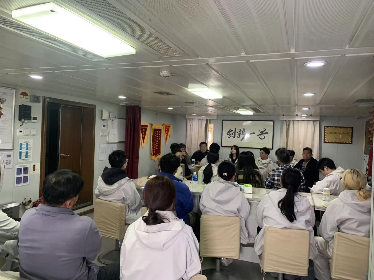 出航前,“创新一”号科考船船长王述强详细汇报了出航前各项工作准备情况,包括船舶设备检查、物资补给、安全保障等,确保航次任务顺利推进;黄河口航段负责人、首席科学家邹涛全面介绍了航次调查内容、搭载项目、搭载单位、搭载人员、站位设置情况及安全注意事项等,明确了各岗位职责与操作规范,为航次有序开展奠定基础。